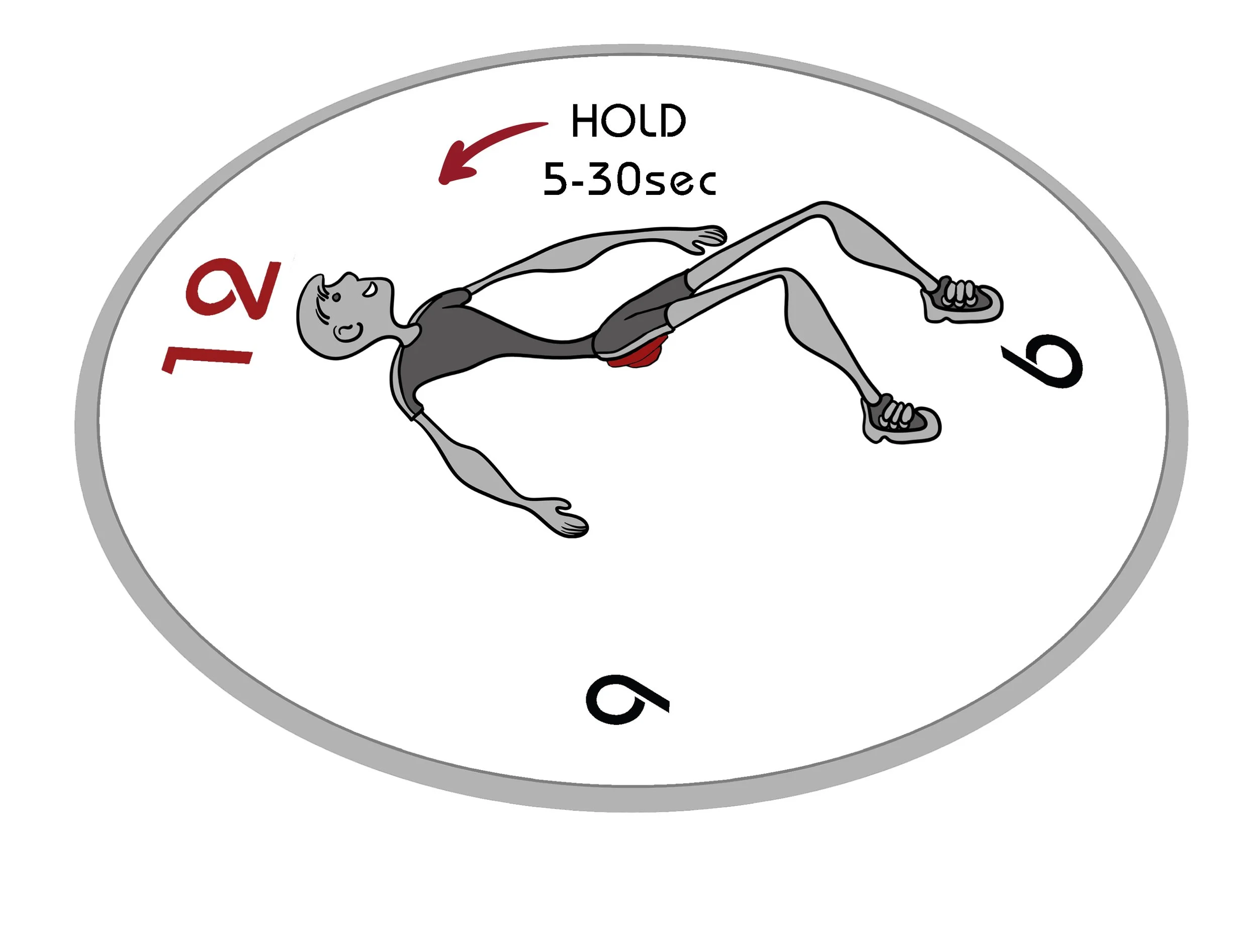 Lie on your back with the Pelvic Clock under your sacrum, legs straight.